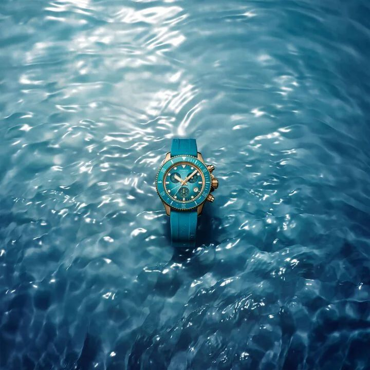 Новий кварцовий хронограф 38 мм втілює суть функціональності водних видів спорту у новому форматі. Виготовлений із нержавіючої сталі та водонепроникний до 30 бар (300 м/1000 футів), він оснащений для того, щоб витримувати як темп життя, так і ваш час у стихії. Його швейцарський кварцовий механізм хронографа обрамлений односпрямованим безелем для водних видів спорту з загвинчується заводною головкою і задньою кришкою для додаткового захисту. Додаткові циферблати забезпечують баланс та контроль, а люмінесцентні стрілки та маркери залишаються видимими, коли світло починає згасати. Розроблений для тих, хто рухається як вода, спокійний на поверхні, що рухається під водою і ніколи не боїться занурюватися в глибину.